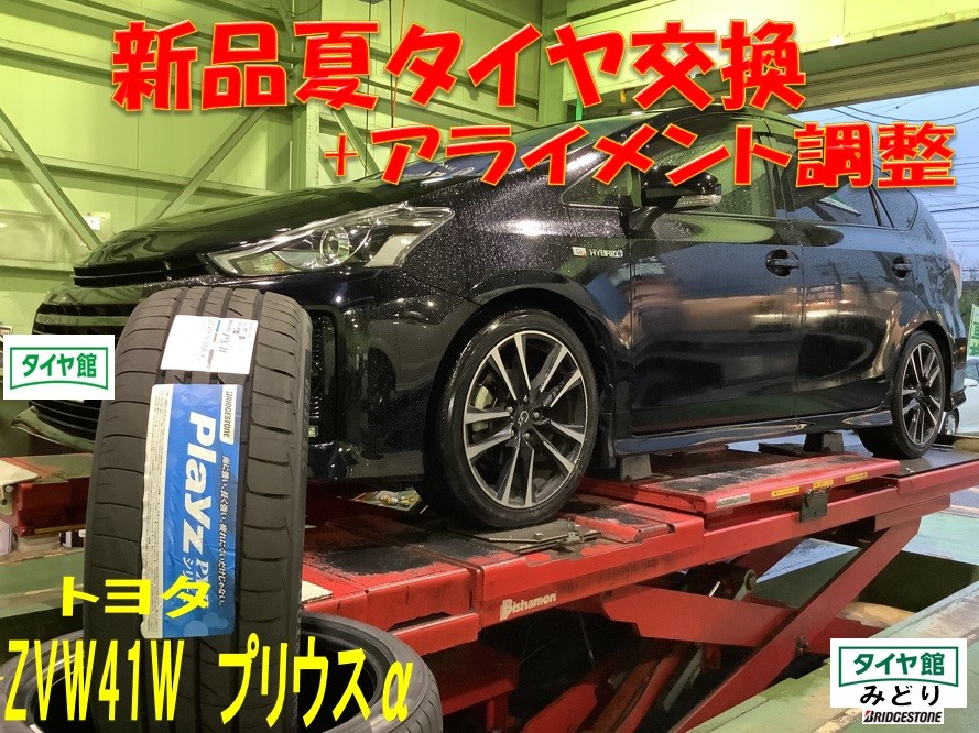 夏タイヤ交換+アライメント作業 トヨタ・プリウスα