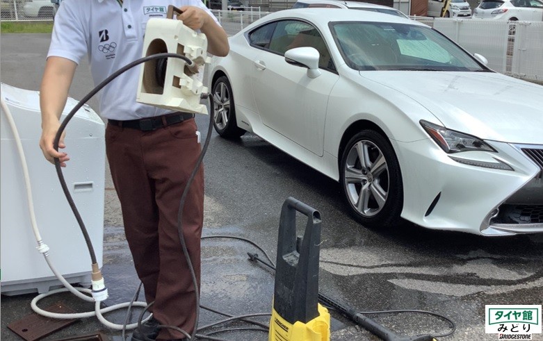 まずは手洗い洗車をして砂や埃を落としていきます。