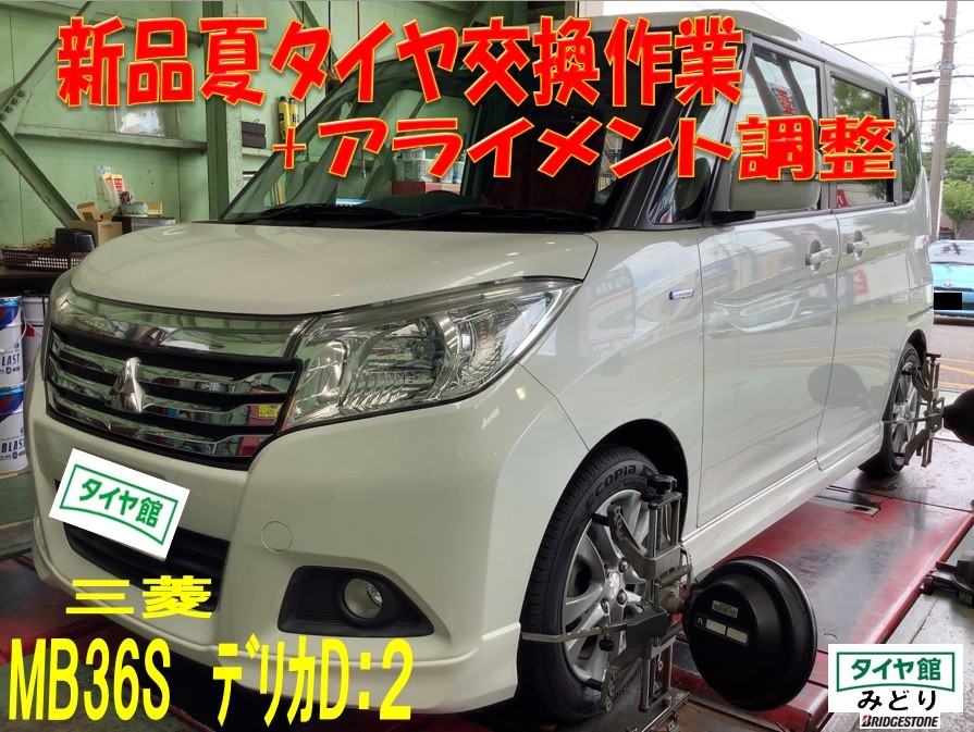 夏タイヤ交換+アライメント作業 三菱・デリカD:2