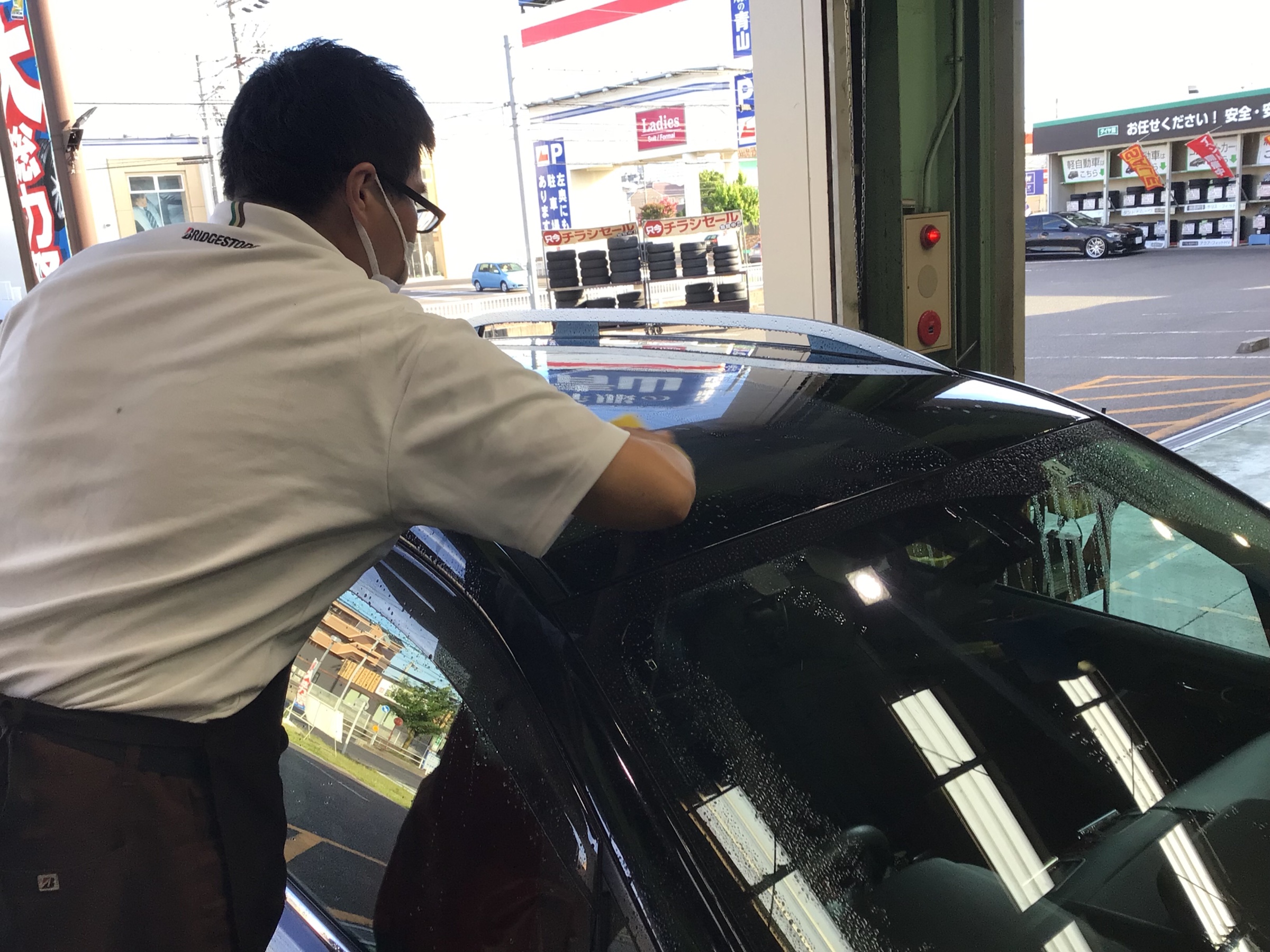見えにくいルーフの部分も、脚立を使ってしっかりコーティングをかけています!