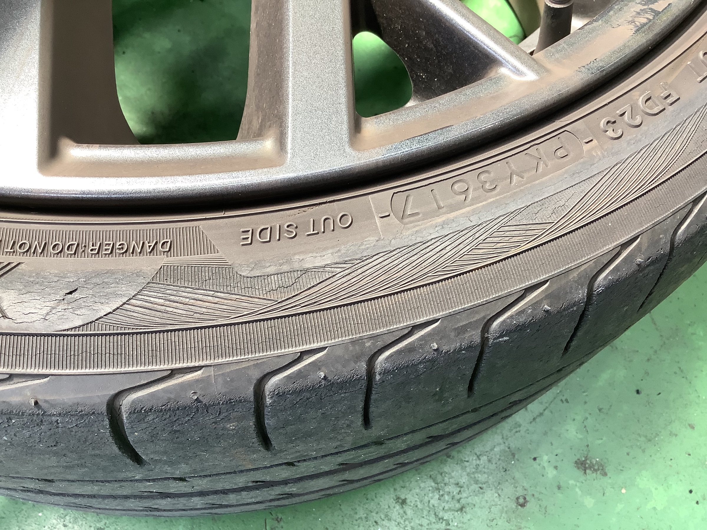 タイヤは4〜5年を経過すると劣化してひび割れが目立つようになります。溝は残っていてもヒビがひどい方には交換をオススメしています。