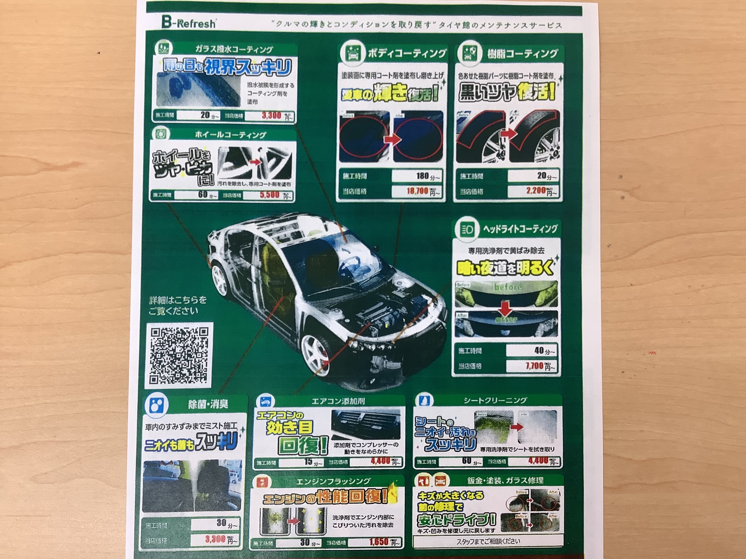 ボディコーティングですと、タイヤ館みどりでは今年の7月からkeeperコーティングを始めたので、