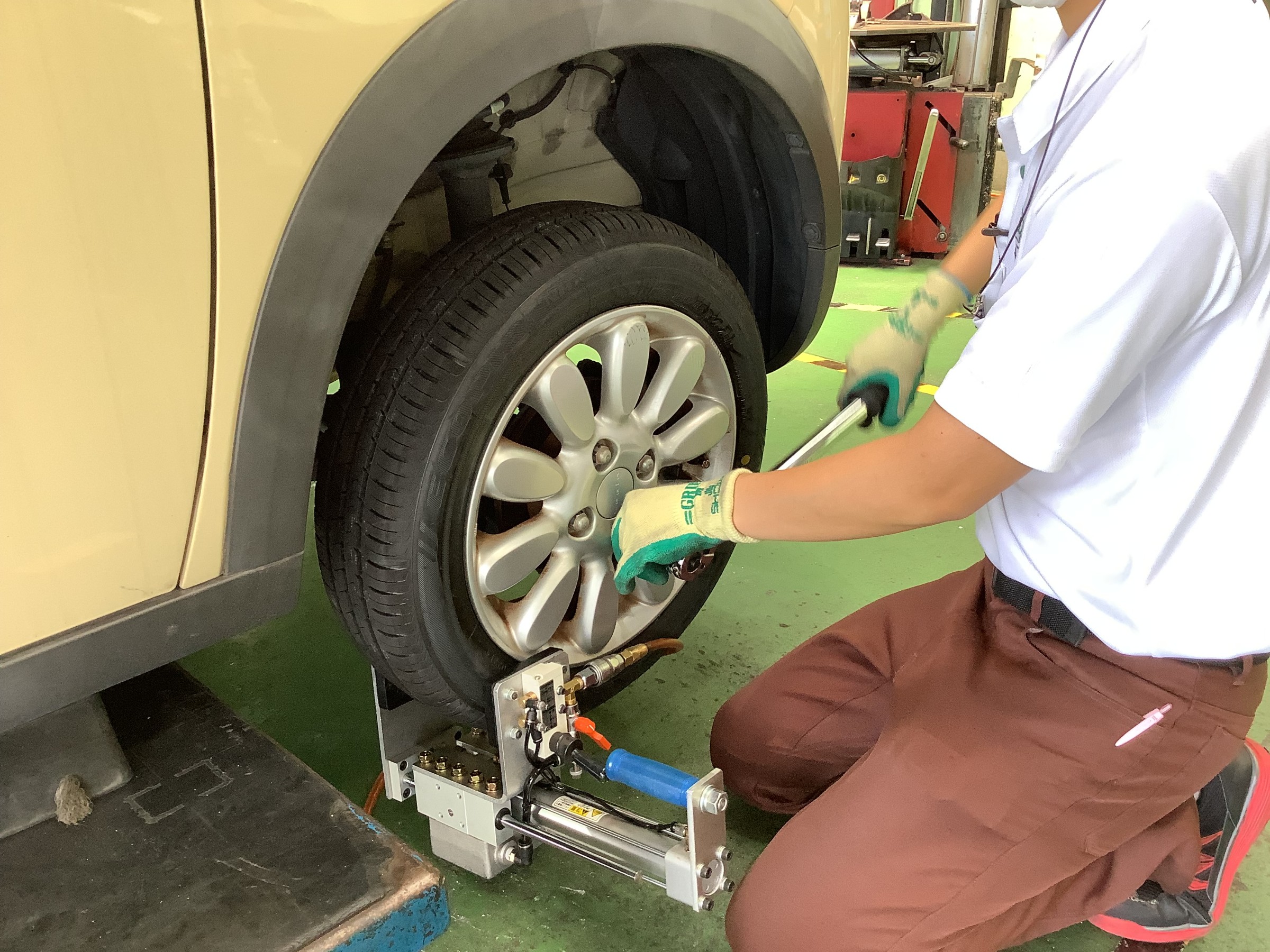 新品タイヤにした後は、アライメントを調整していきます(*^^)v