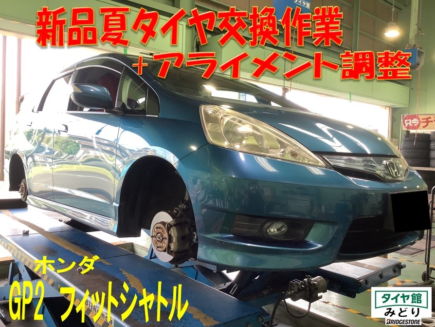夏タイヤ交換+アライメント作業 ホンダ・フィットシャトル