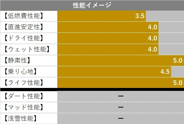 ※性能イメージ図はブリヂストンタイヤのSUV・4x4用タイヤカテゴリー内での性能特性のイメージを表したものです。