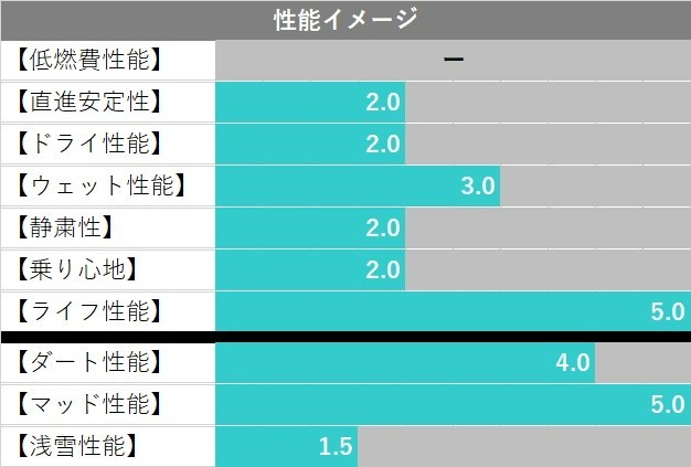 ※性能イメージ図はブリヂストンタイヤのSUV・4x4用タイヤカテゴリーのDUELER内での性能特性のイメージを表したものです。