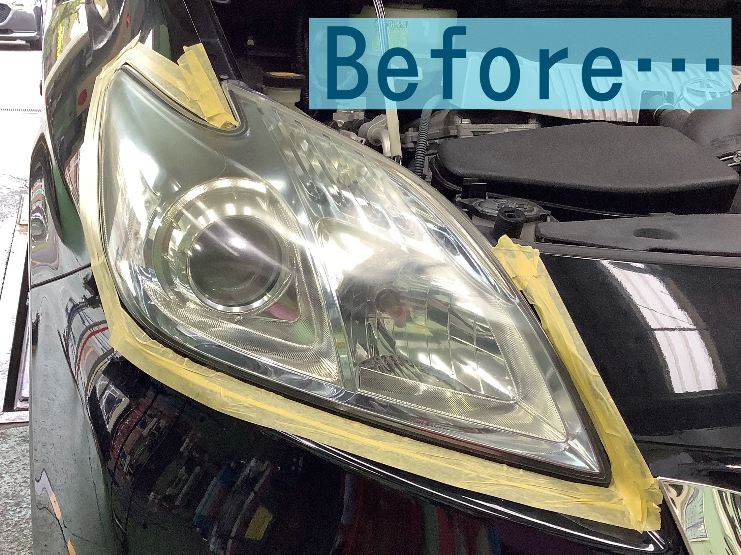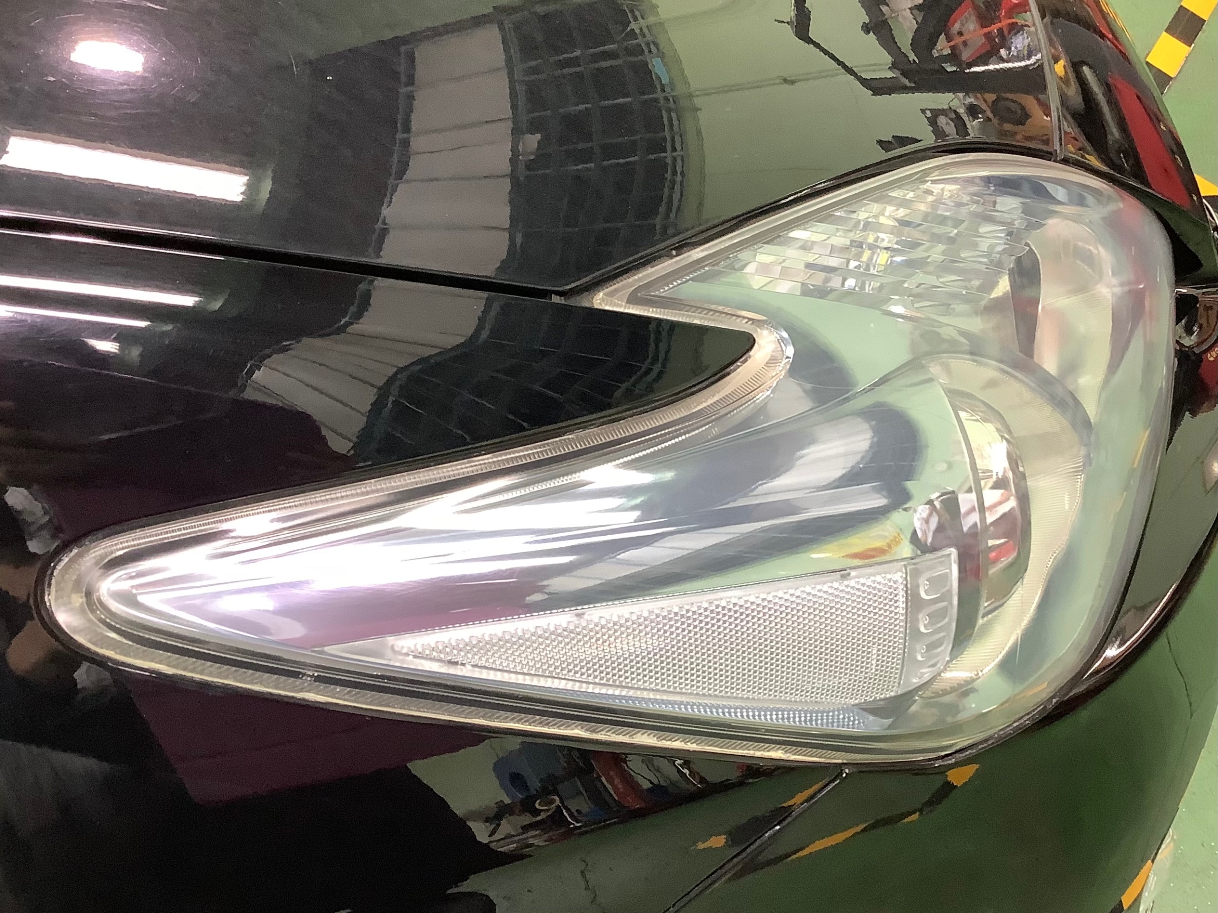このヘッドライトの汚れ、落ちるかな…