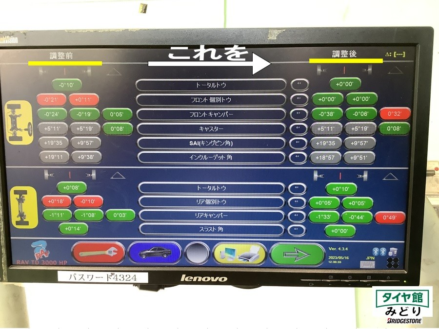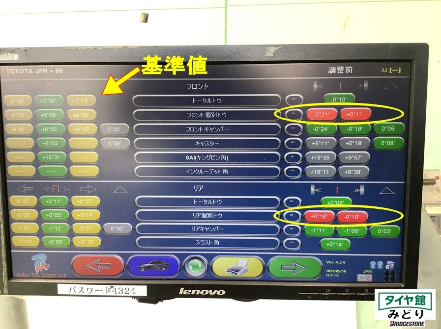 アライメント調整作業 トヨタ・86