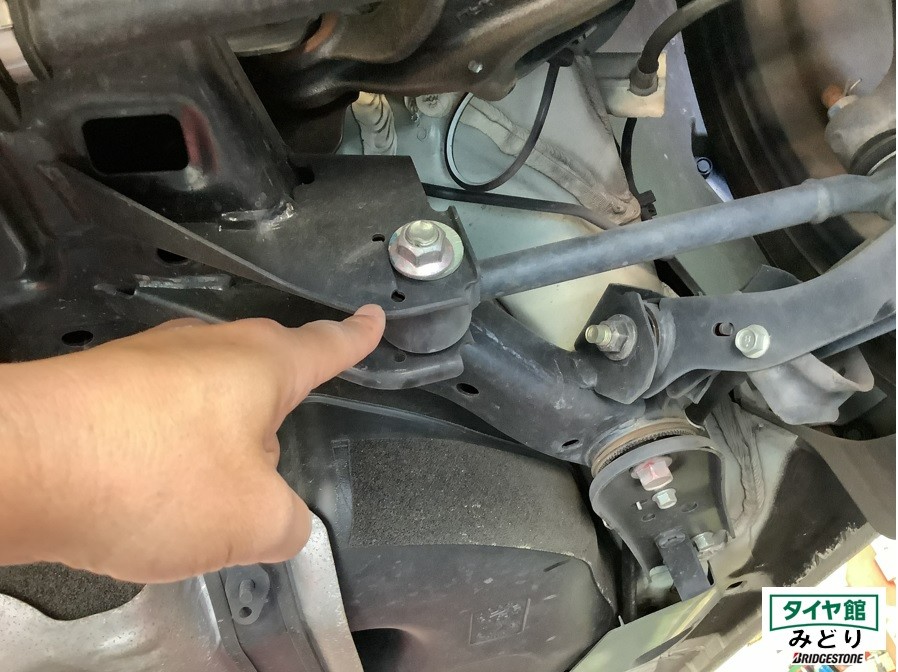 フロントはごく一般的なタイロッドなので