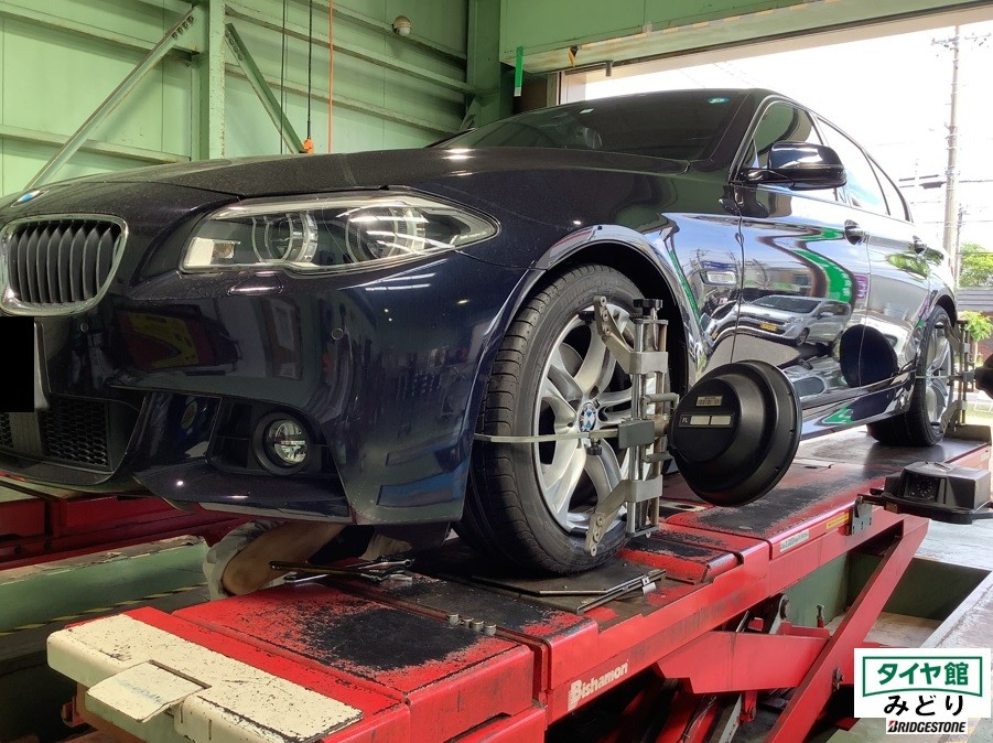 夏タイヤ交換作業+アライメント BMW・5シリーズ