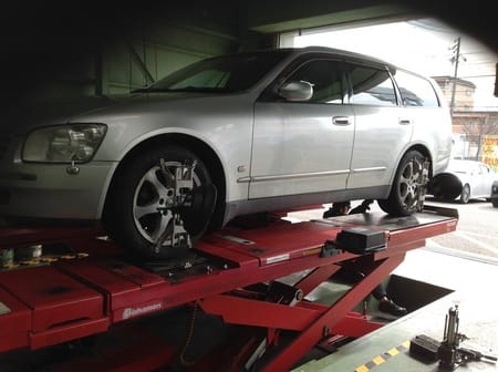 本日の作業は日産ステージアのタイヤ交換とアライメント作業です!!