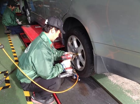 若干の偏摩耗が見られたので合わせて、ホイールアライメントも実施!!