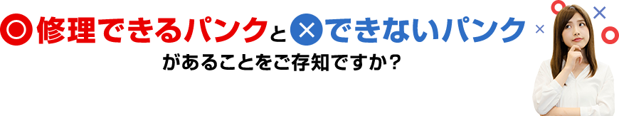 タイヤ1本につきパンクの数は最大2ヵ所まで。その場合、パンクの穴と穴の間隔が40cm以上