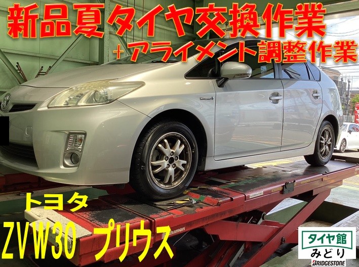 夏タイヤ交換作業+アライメント調整 トヨタ・プリウス