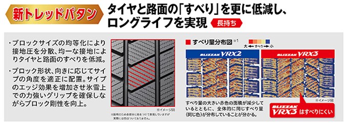 「BLIZZAK VRX3」の「新トレッドパタン」