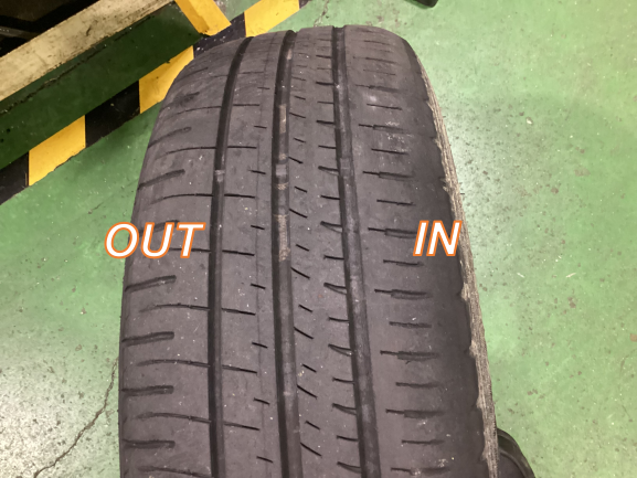特にIN側の摩耗がひどいので、タイヤ交換と同時にアライメント調整も行います。