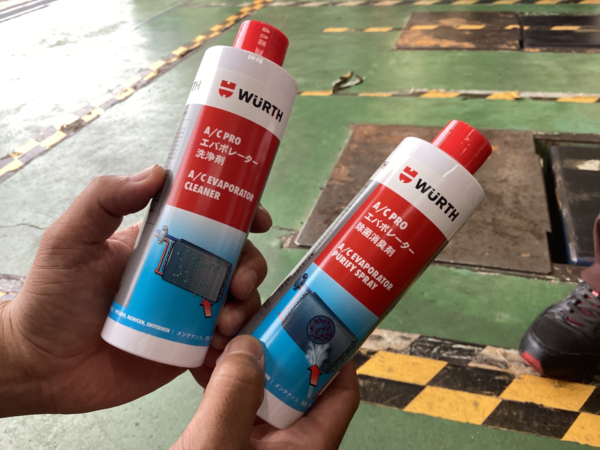 エバポレーター洗浄では、洗浄剤と除菌消臭剤の二つを使います。