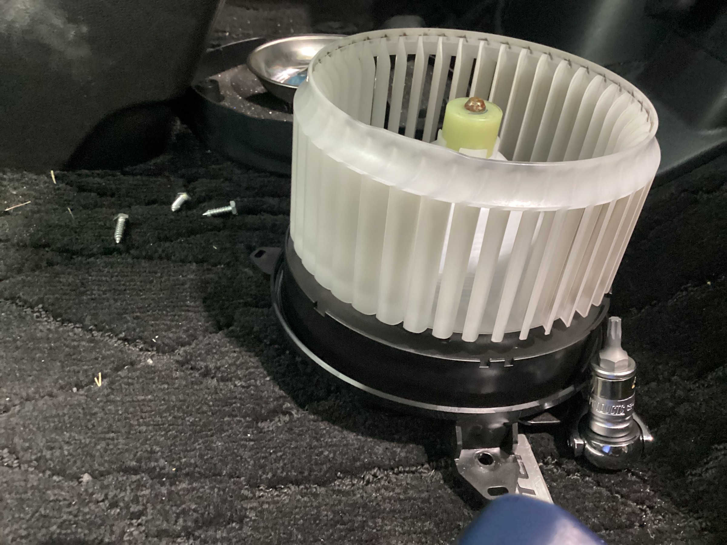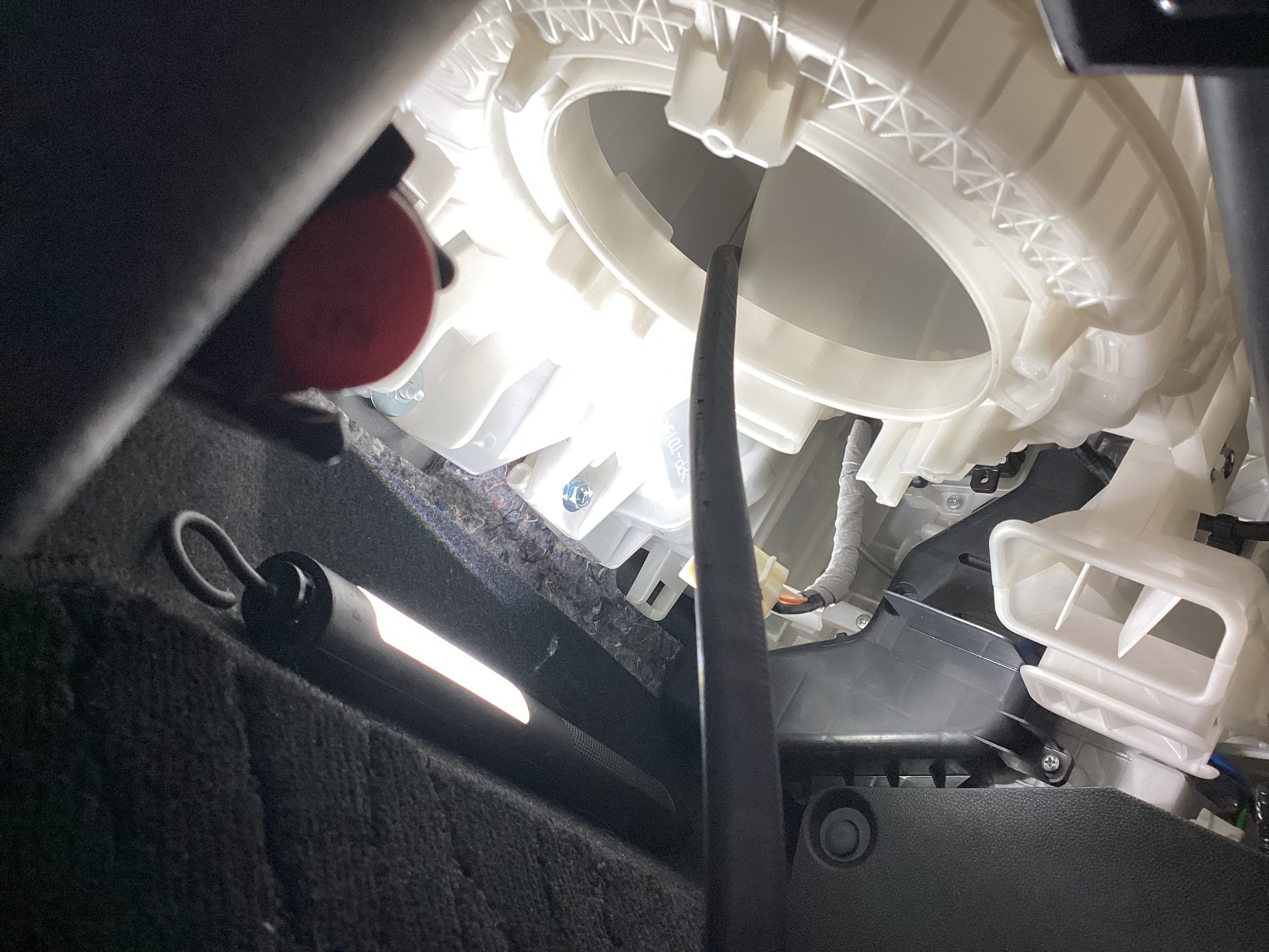 このようにブロアファンを外したとことからエバポレータを見て汚れているところを除菌して洗浄剤をかけて終了になります。