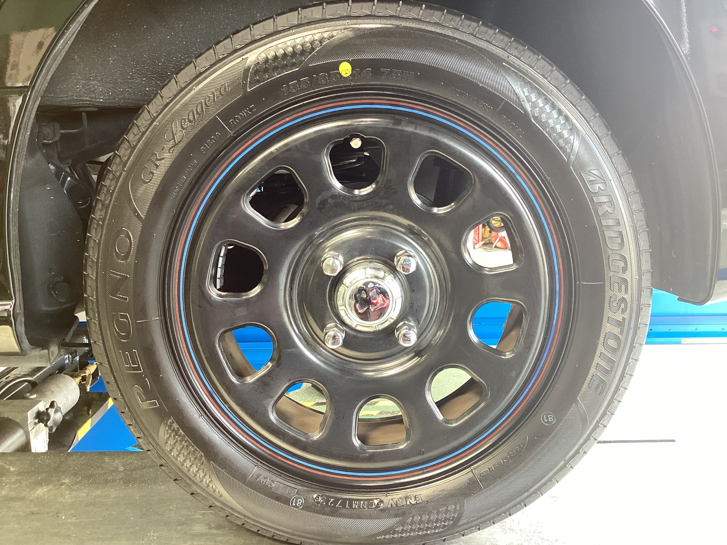 タイヤ館では、タイヤ交換の際アライメントの紹介をさせていただき一緒にやっていただきました。