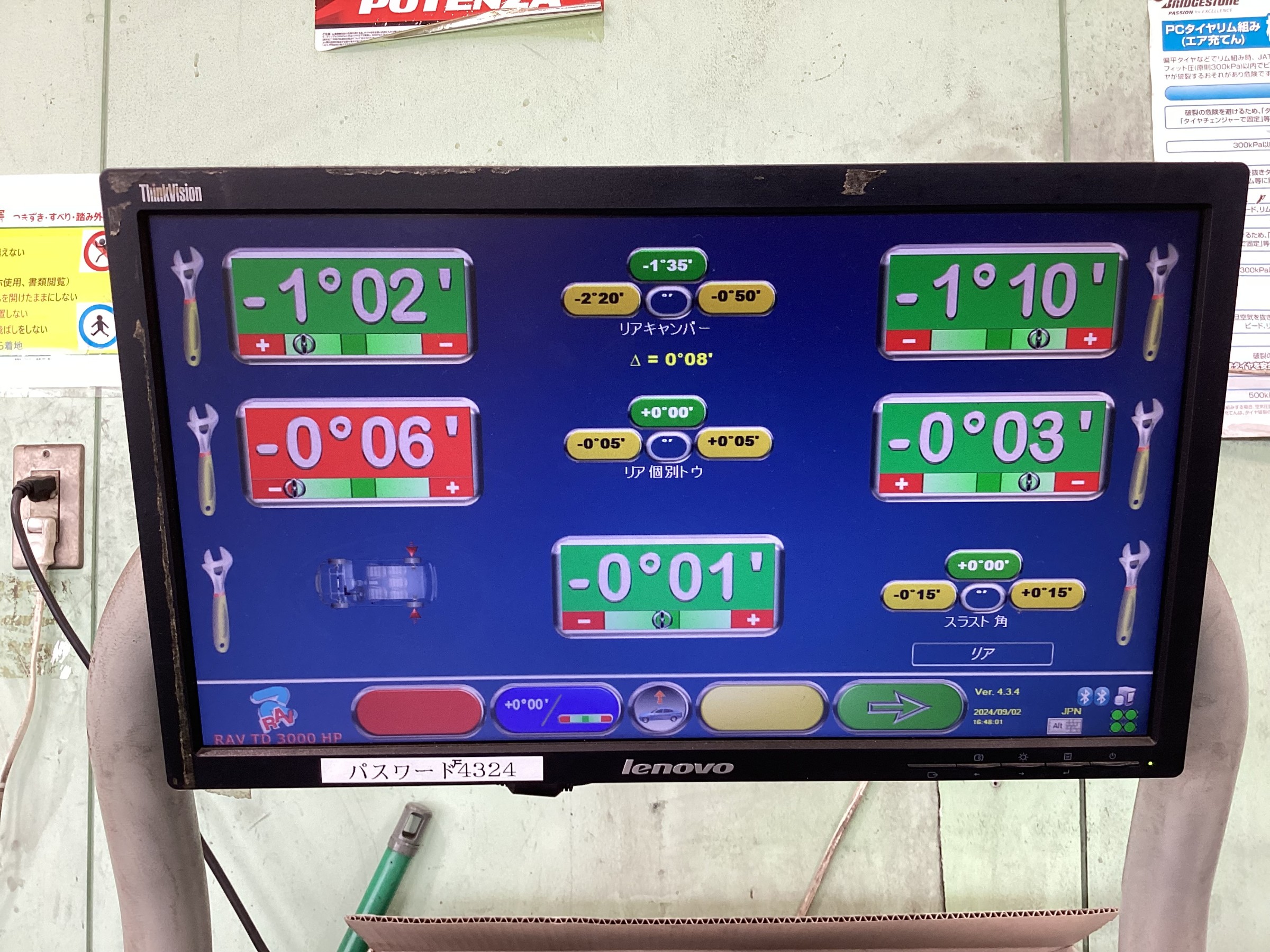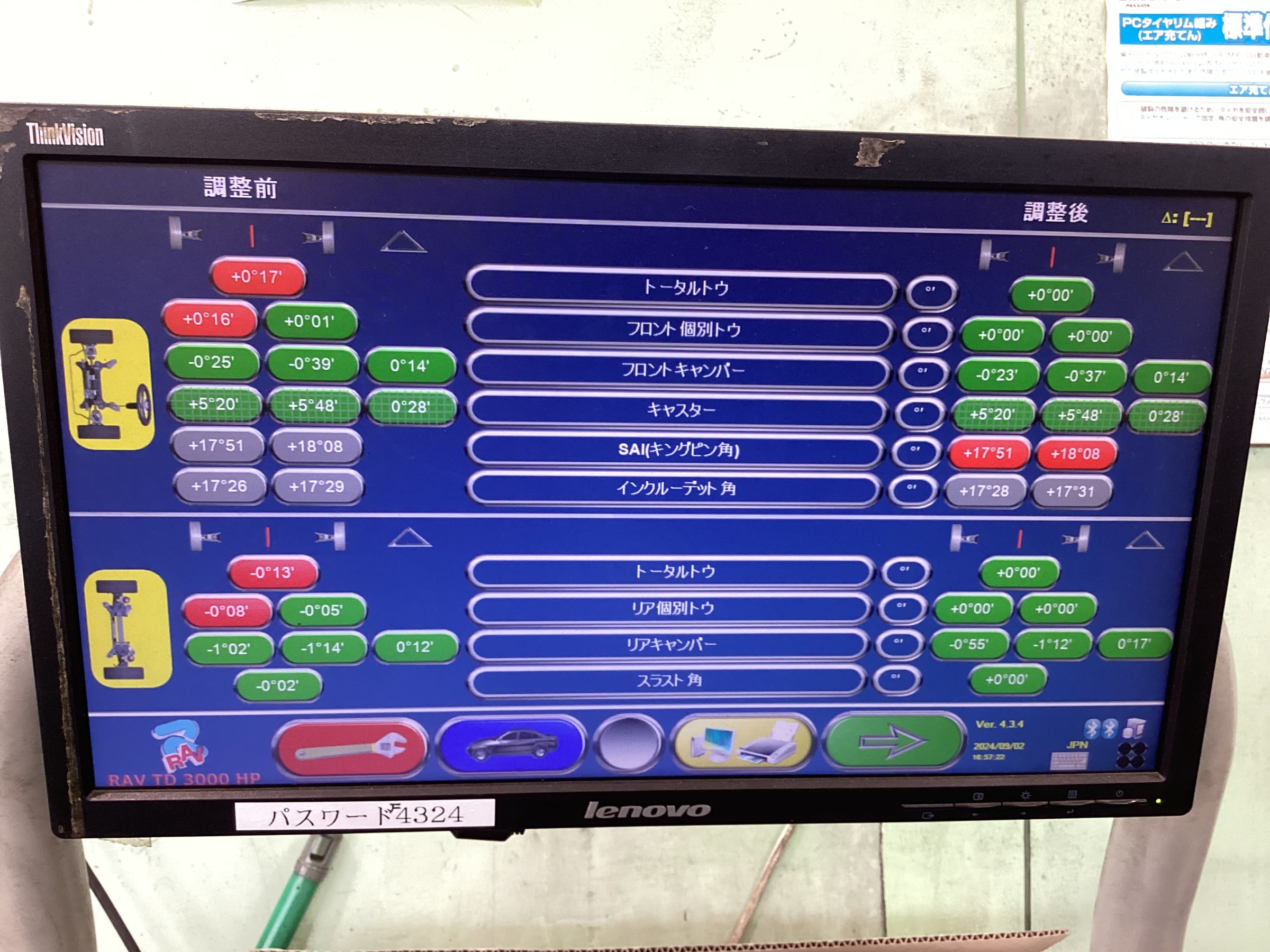 付けて、車を前後し、ハンドルのセンターをしっかりだして測定が終了になります。