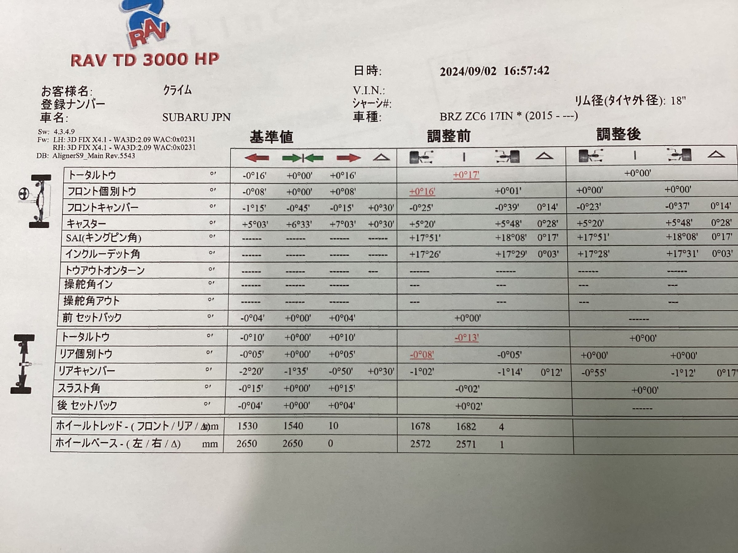 今回車高を純正に戻したさいにアライメントを取りにご来店していただきました。