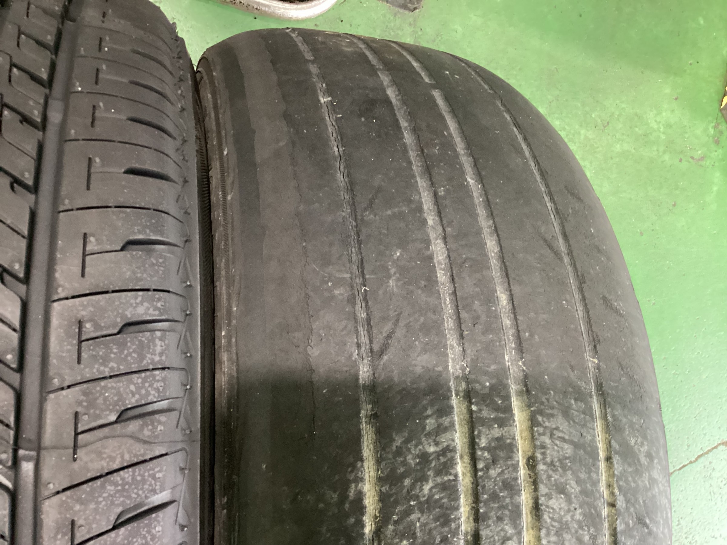 こう見てもらうとタイヤ交換前のタイヤの溝が少なくなっていることがわかりますね。