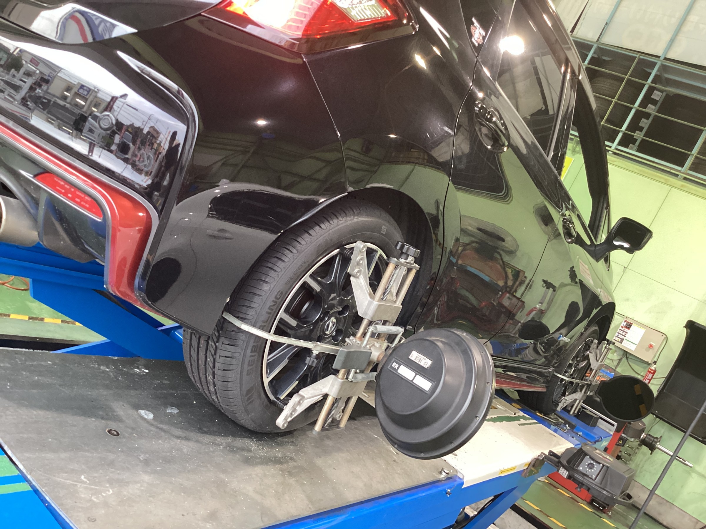 タイヤ交換作業が終わったら次はアライメント調整作業をやっていきます!!
