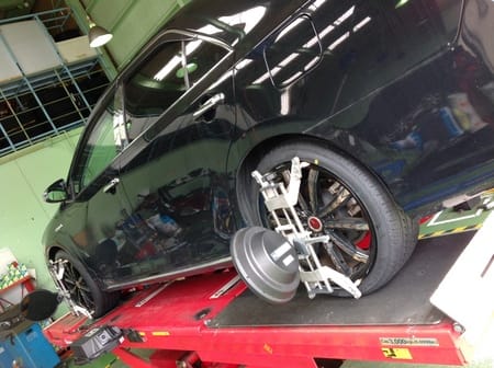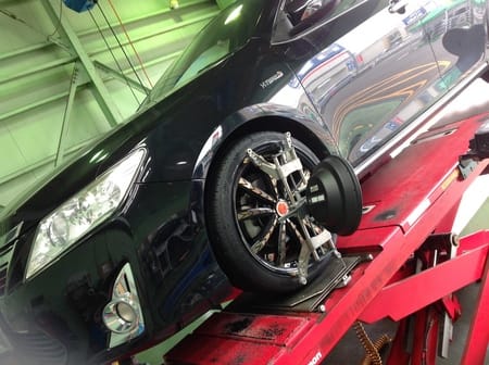 本日の作業はトヨタのカムリHVのタイヤ交換とアライメント作業です!!