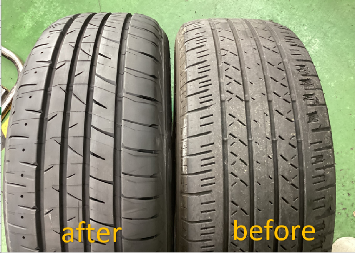実際のタイヤの摩耗具合とデータを照らし合わせ