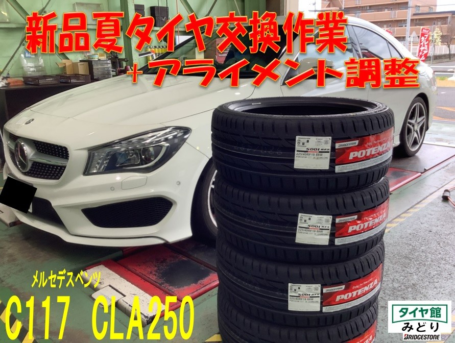 夏タイヤ交換作業+アライメント調整 メルセデスベンツ・CLA250