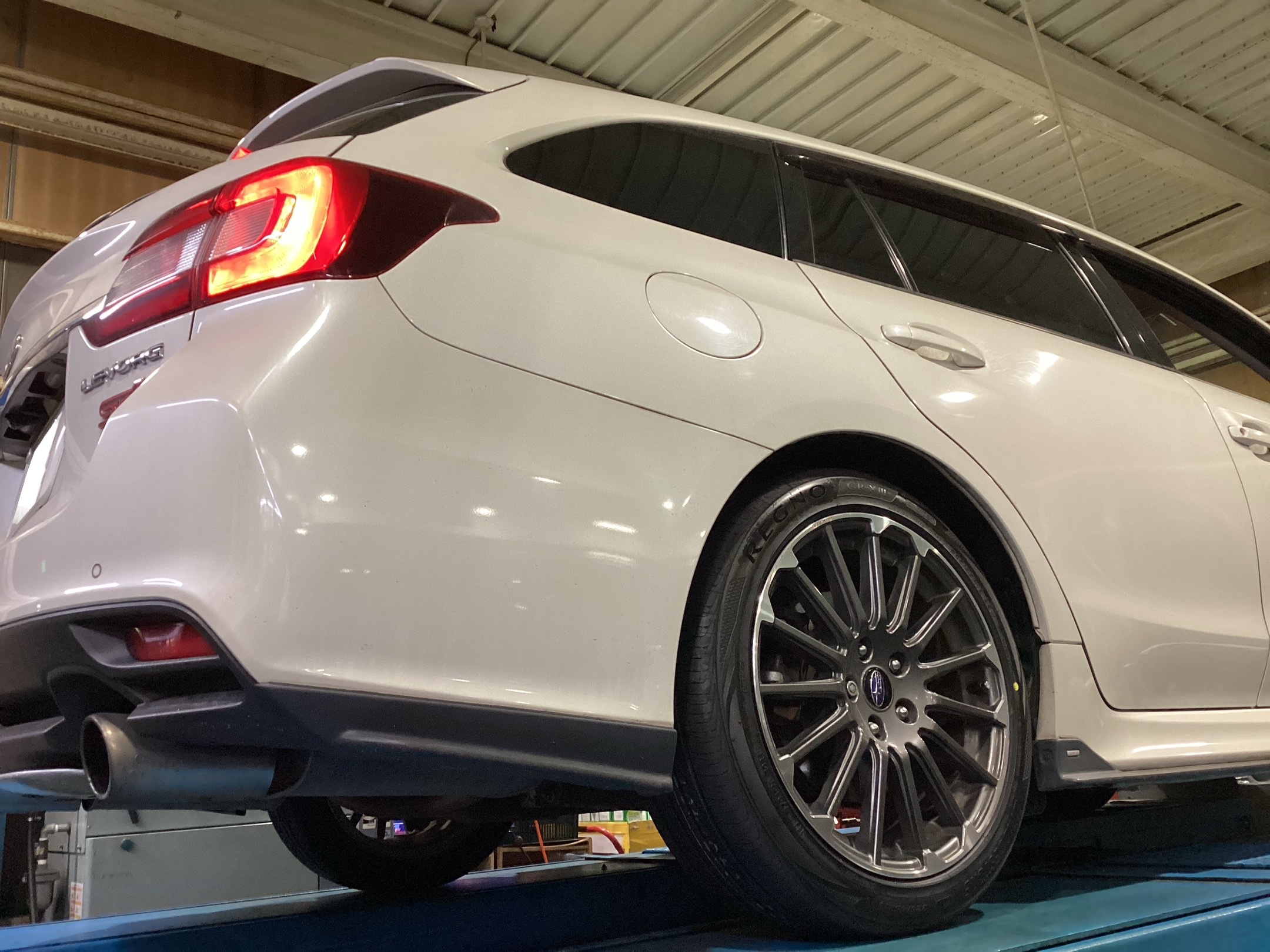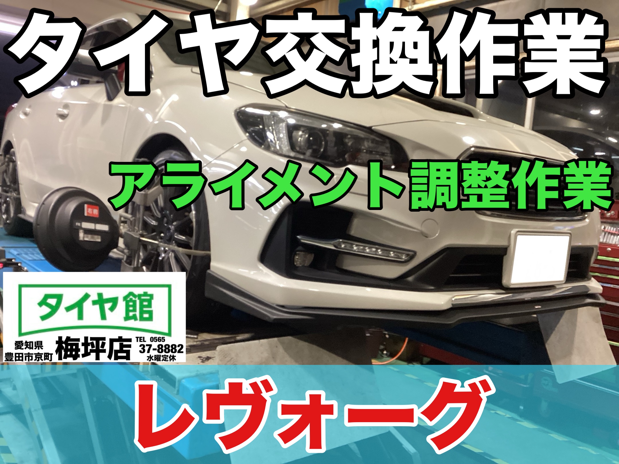レヴォーグの夏用タイヤ交換作業とアライメント調整作業を実施させていただきました。
