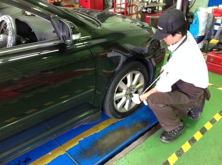 当店はタイヤ購入から100KMをめどに無料点検をさせていただいております。