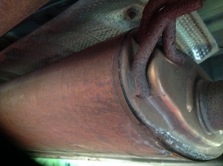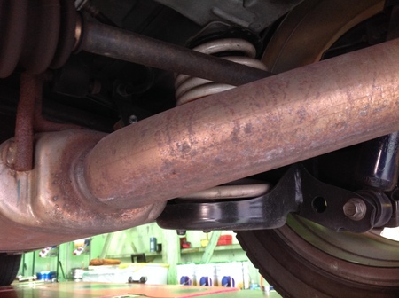 サビが付着して進行してしまうと排気マフラーに「穴が開いたり、