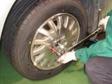 □当店では、クロスレンチを使用し、ホイールに傷をつけないように丁寧に対角線上に均等に仮締めした後、