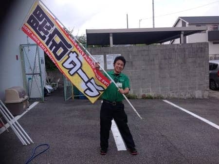 本日はのぼりをセットいたしました、豊島のスマイルチェックもバッチリ
