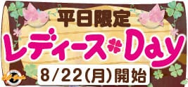 明日22(月)より、【平日限定】レディースディ開催します♪♪