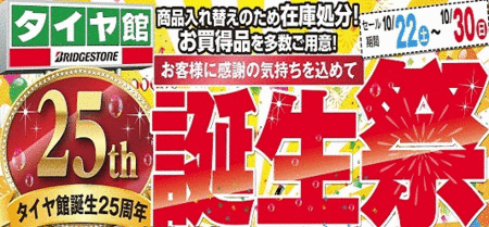 タイヤ館25周年誕生祭まで、、、あと\(◎o◎)/