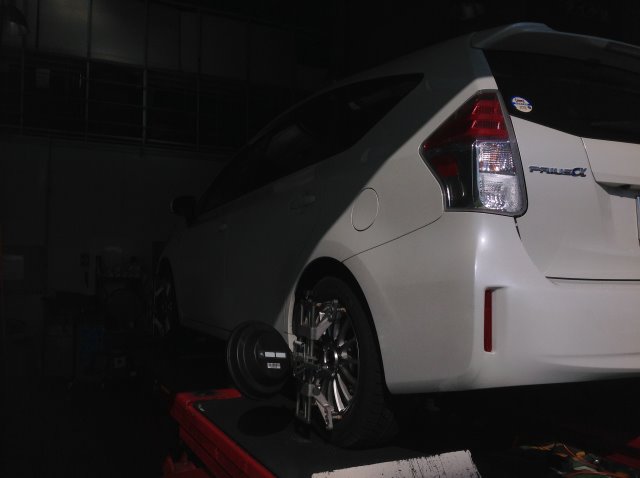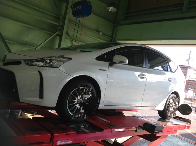 先日ご来店いただいたプリウスαの スタッドレスホイールセット&アライメント調整の様子です!