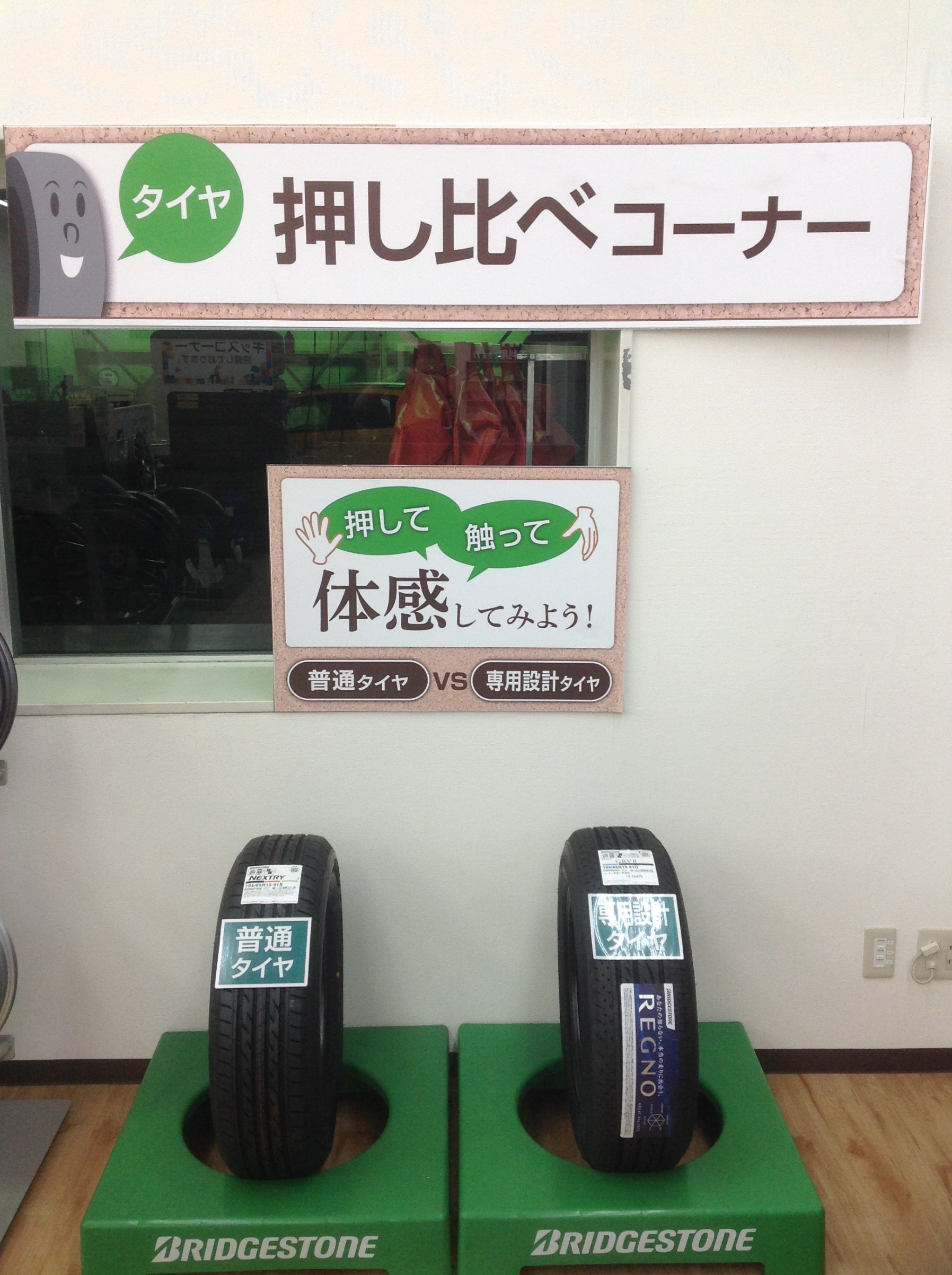 設置してあるタイヤはネクストリーとレグノGRVⅡです。このコーナーで何がわかるかというと、