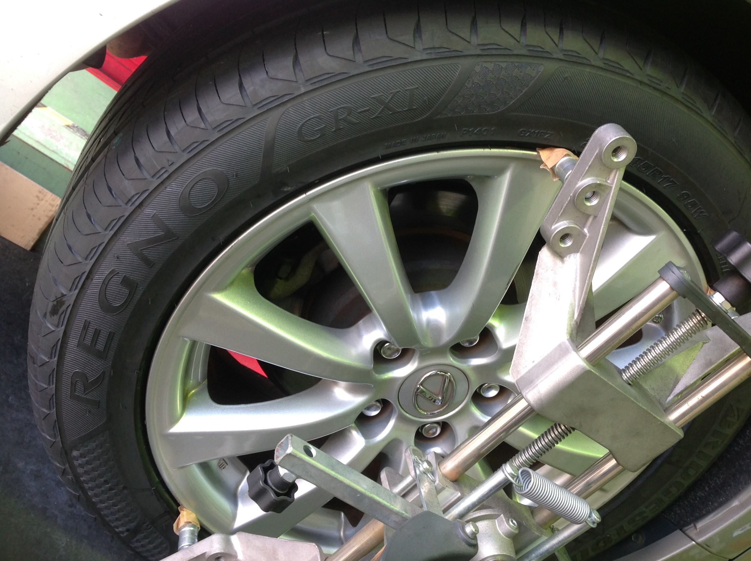 せっかく良いタイヤをお取付いただいたので、タイヤの性能発揮と長持ちの為にアライメントも