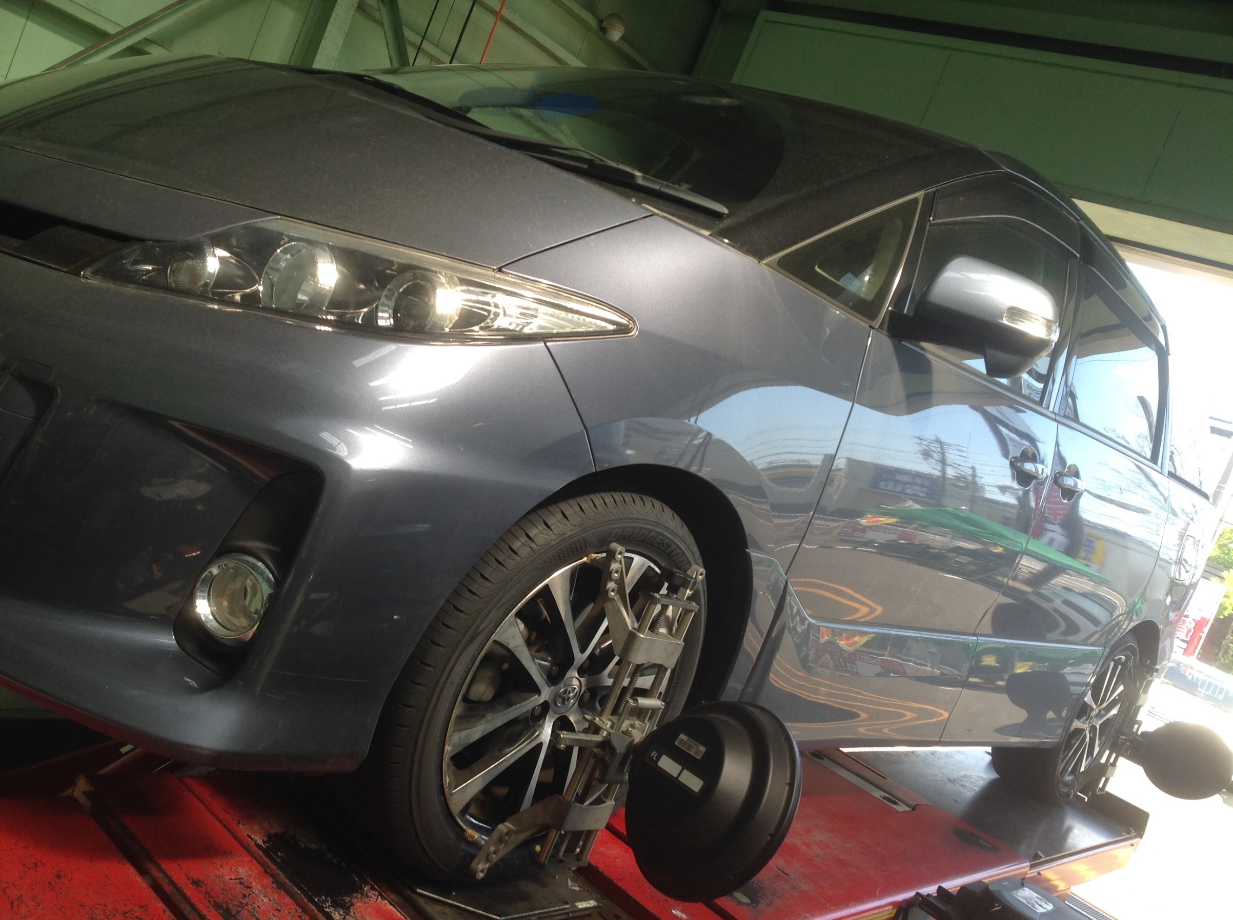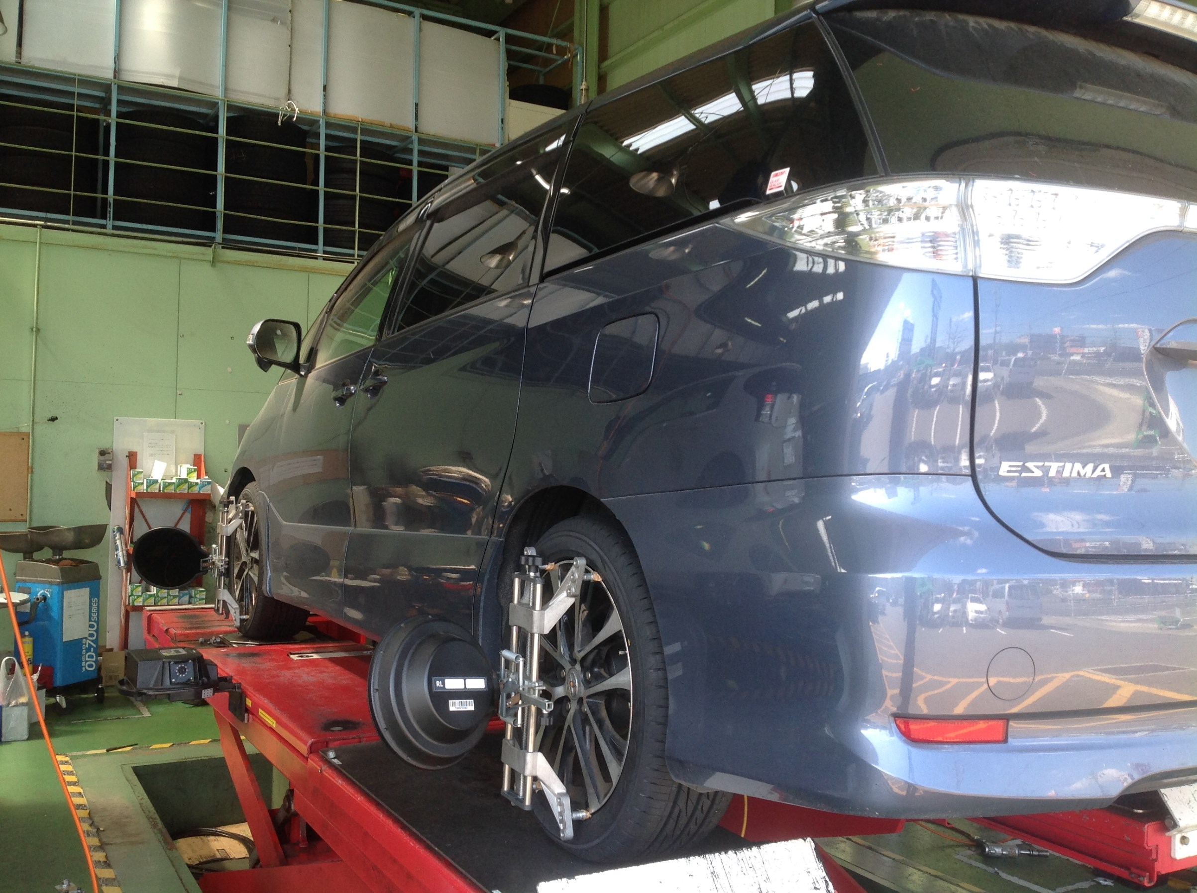 先日のエスティマ のタイヤ交換&アライメント調整の作業の様子です!