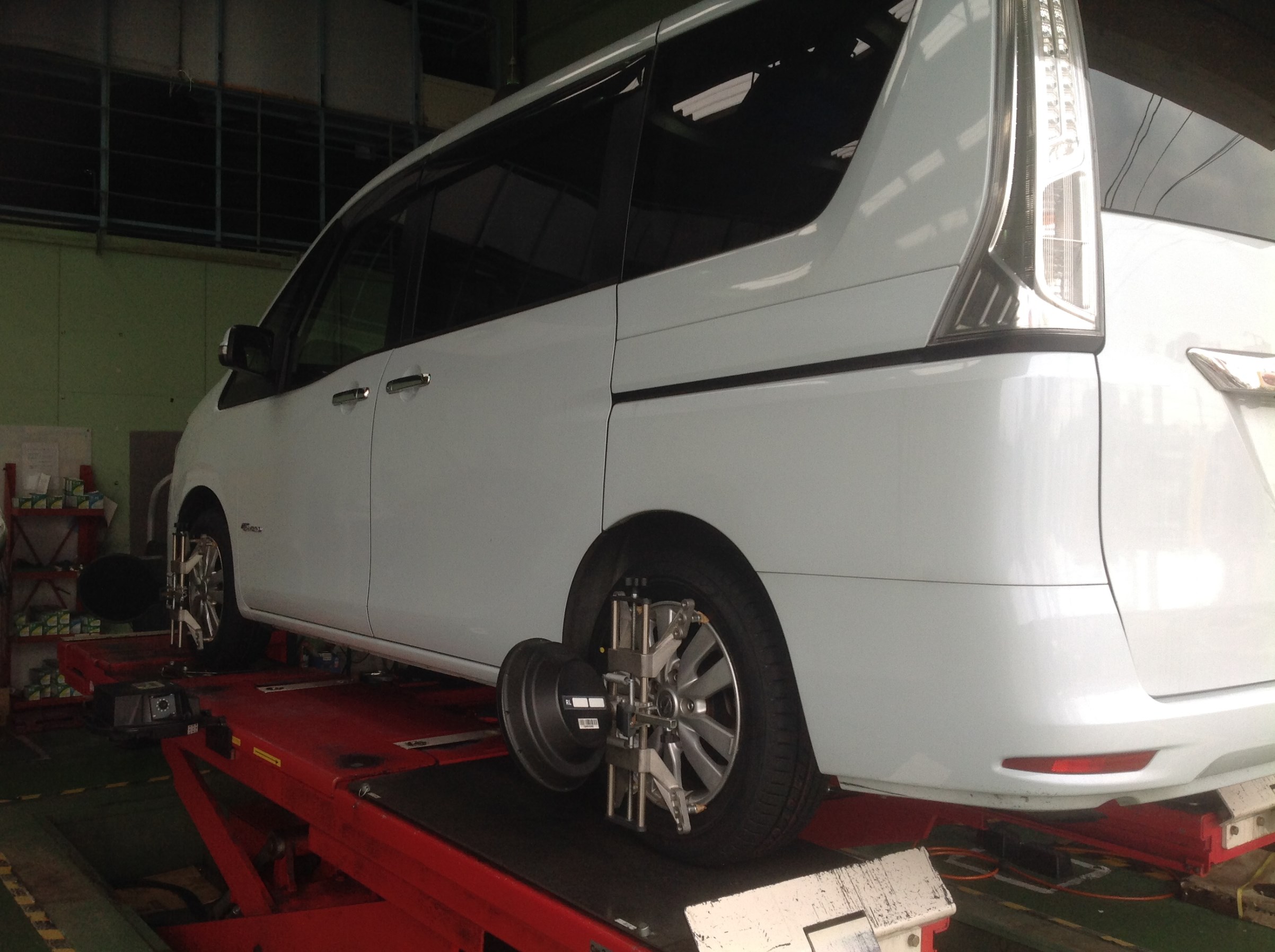 本日の作業は、セレナタイヤ交換&アライメント調整&オイル交換です^^