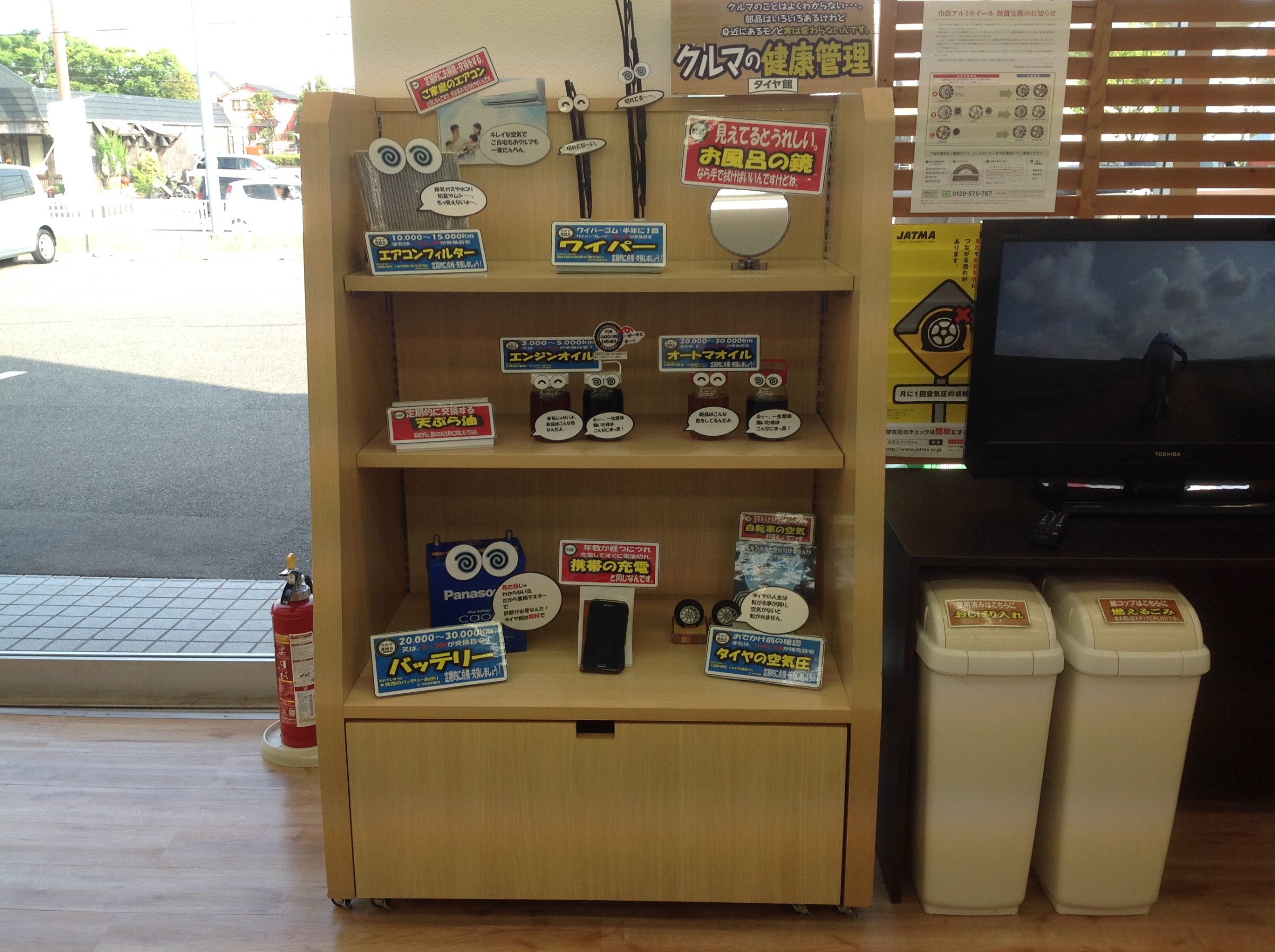 車のメンテナンス用品を例えた、わかりやすいコーナーを設置いたしました。