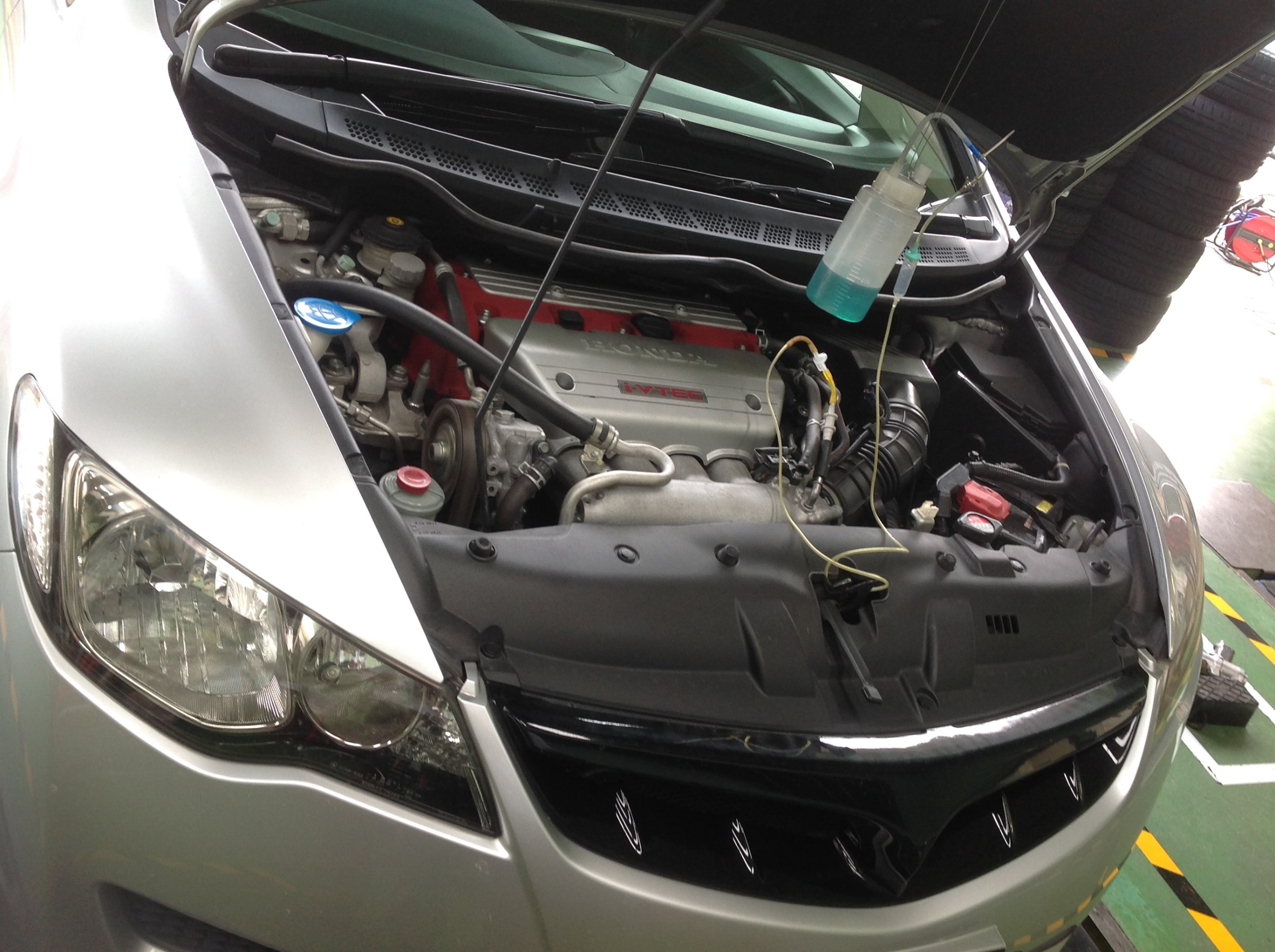 今日はシビックでレックスをしました。どんな作業かというと、お車の点滴です。