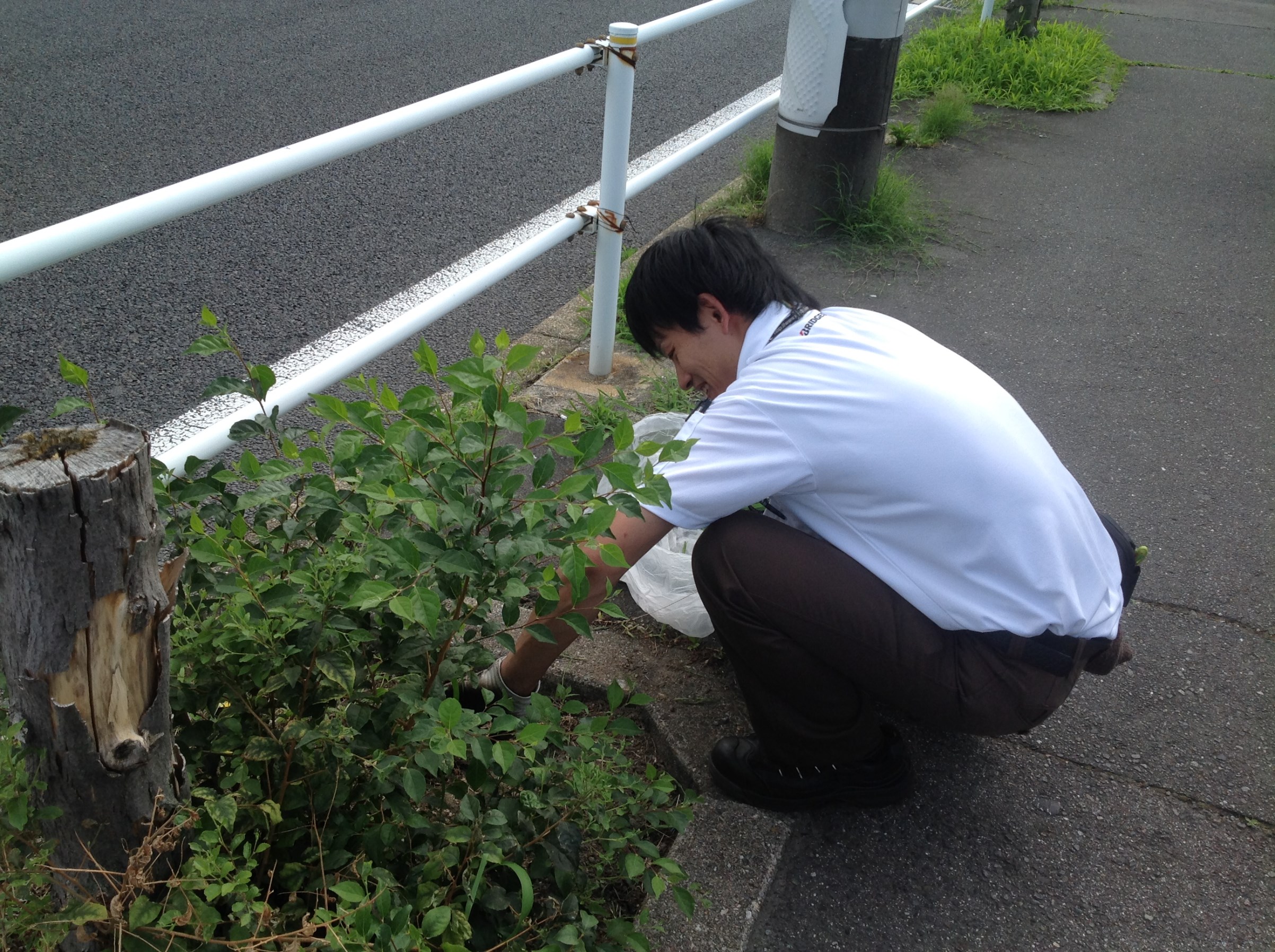 久し振りに晴れたし、昨日の雨で土が柔らかくなっていたので、柳瀬君が草取りをしてくれました!!