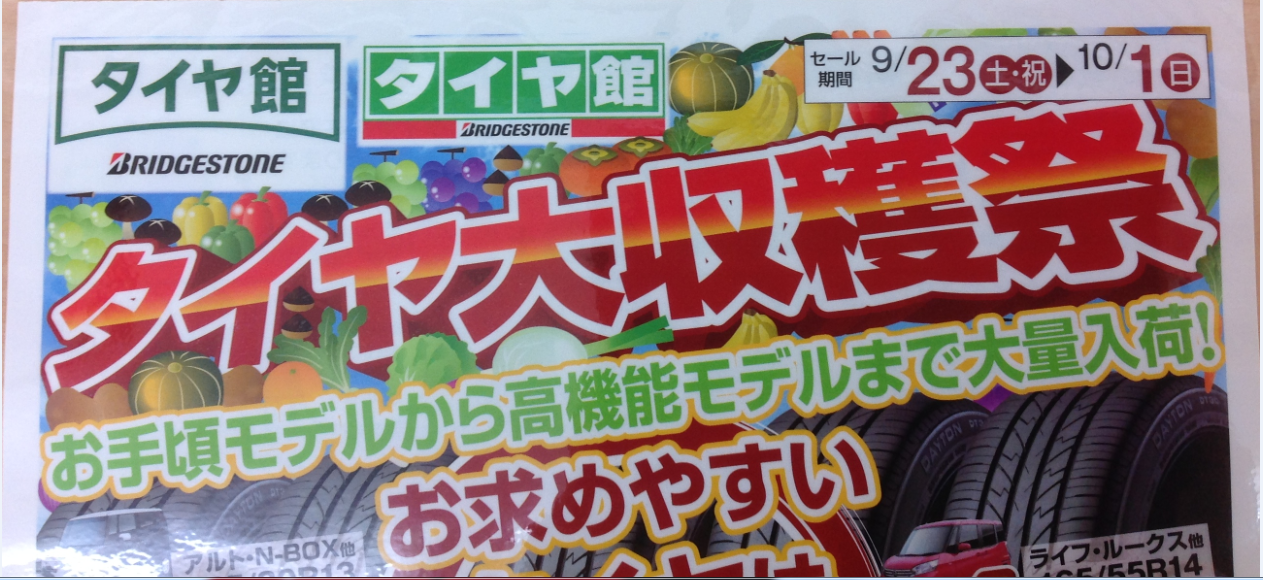 明日9/23~10/1まで【タイヤ大収穫祭】が始まります(^o^)/