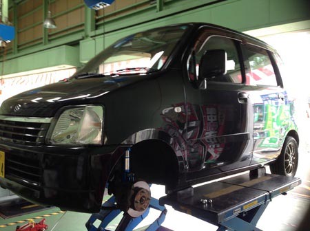 もちろんアライメントも調整をします。基本的に足回り交換とアライメント調整はセットでやっています。