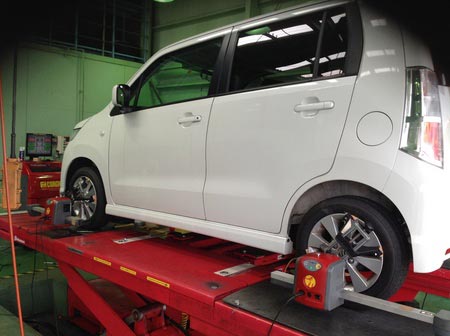 本日はワゴンRスティングレーにタイヤ交換とアライメント作業を