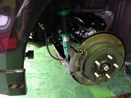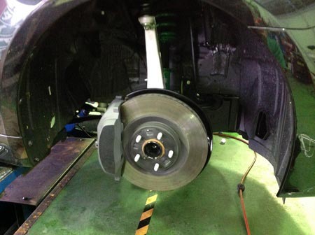 車高調の取り付けは初めてです。雨が冷たい!!