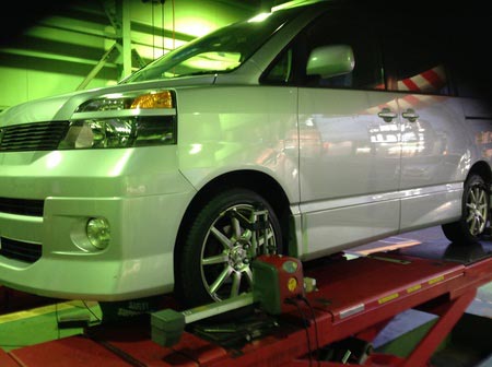 今日の作業は60系VOXYのタイヤ交換とアライメント作業と